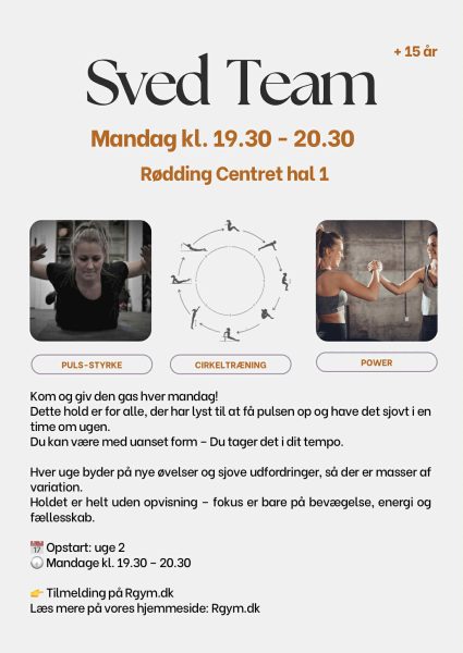 Tid: mandag kl. 19.30 – 20.30 (holdet starter op i uge 2)